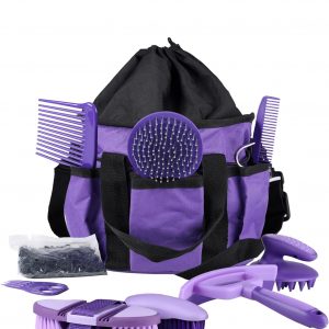 Harrison Howard Horse Grooming Kit 9-Piece Equine Care Series Horse Brush Sets with Organizer Tote Bag Tack Room Supplies Shedding Grooming Massaging Tools Purple
