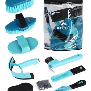 Shinewell Horse Grooming Brushes Kit 9 pieces with Organizer Bag Grooming Care Series Horse Brush Sets Blue