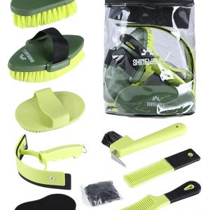 Shinewell Horse Grooming Brushes Kit 9 pieces with Organizer Bag Grooming Care Series Horse Brush Sets Green
