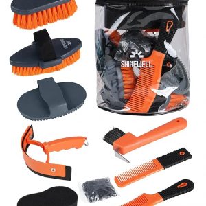 Shinewell Horse Grooming Brushes Kit 9 pieces with Organizer Bag Grooming Care Series Horse Brush Sets Orange