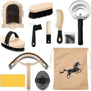 11PCS Horse Grooming Kit Curry Comb Sweat Scraper Horse Bathing Supplies Grooming Tools with Storage Bag Shadowberry