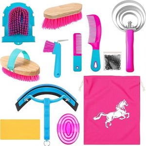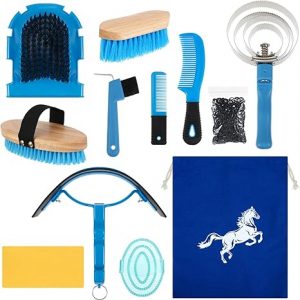 Abbylike Horse Grooming Kit Horse Brush Sets Equine Care Cleaning Kit Grooming Massaging Tools – Blue