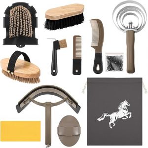 Abbylike Horse Grooming Kit Horse Brush Sets Equine Care Cleaning Kit Shedding Grooming Massaging Tools – Khaki