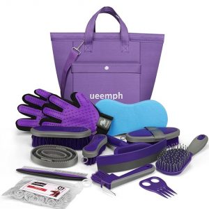 Horse Grooming Kit – 11 Piece Bathing Supplies with Organize Bag, Full Body Kit Including Sweat Scraper, Bath Sponge, Hoof Pick, Massage Comb (Purple)