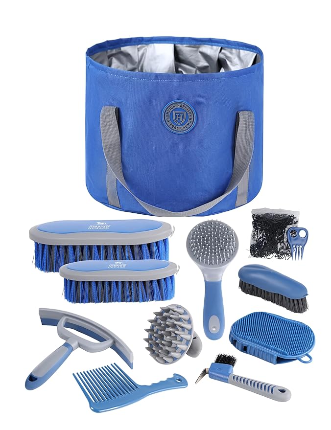 - Thoughtful Design: The brush bristles are specially treated to be gentle yet resilient, ensuring effective cleaning without harming the horse’s skin or coat. Whether grooming a calm family horse or an energetic racehorse, this kit provides a safe and comfortable experience. Using this grooming set not only keeps your horse clean and healthy but also improves blood circulation, contributing to their overall well-being.