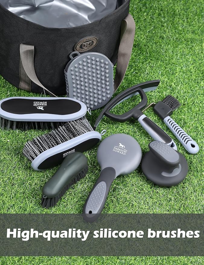 Harrison Howard Horse Grooming Kit Equine Care Series Horse Brush Sets – Black