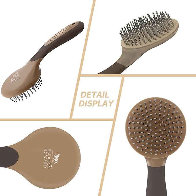 Harrison Howard Horse Mane and Tail Brush – Professional Grooming Brush, Equestrian Detangler, Non-Slip, Dark Brown