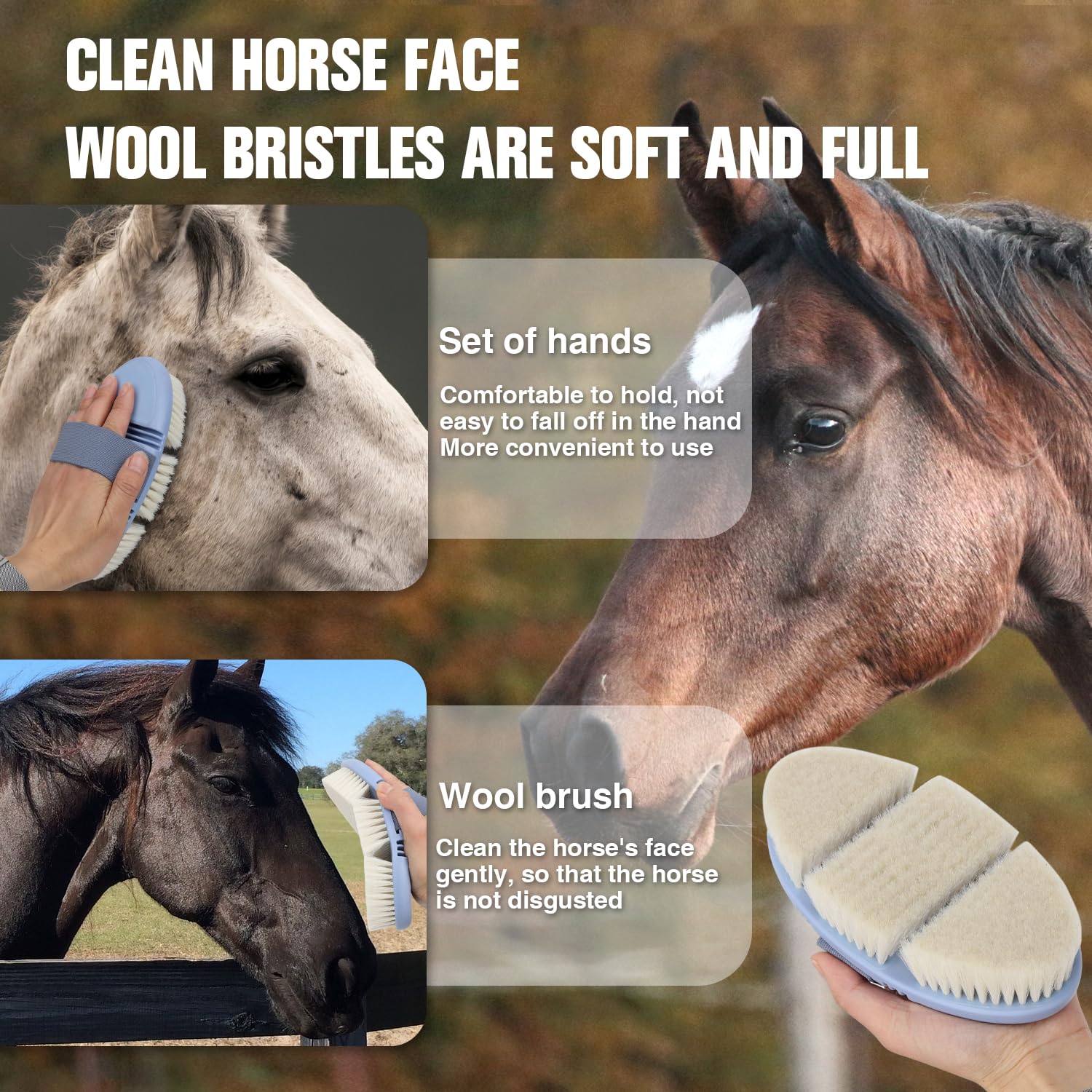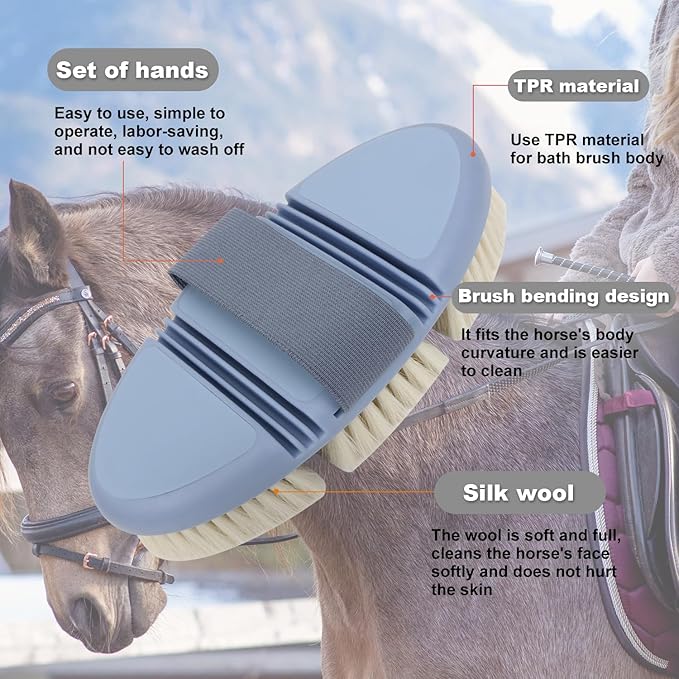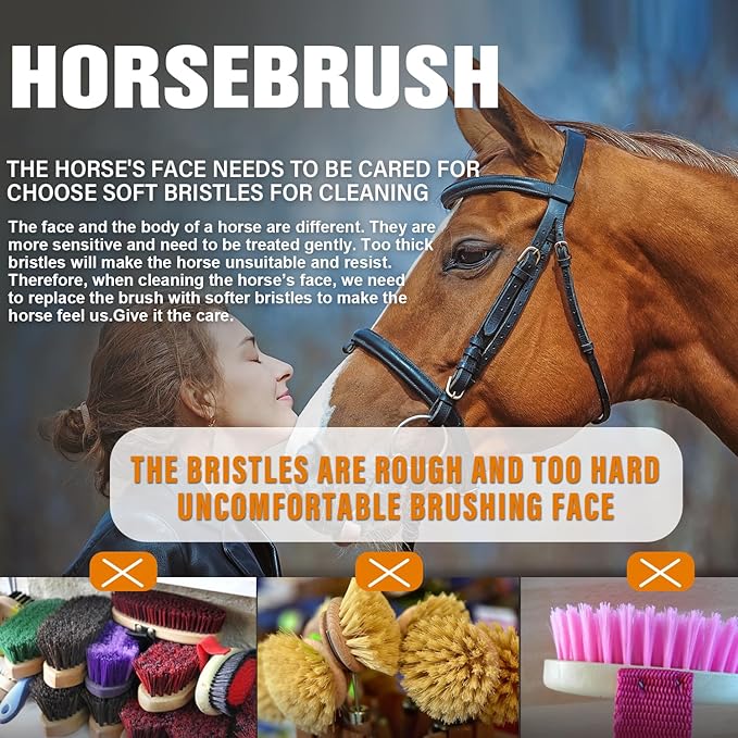 - 2. Effective Dirt and Dust Removal The soft bristles are perfect for removing dirt, dust, and debris from your horse’s face, leaving their coat clean and shiny. It’s an essential tool for maintaining your horse’s hygiene and keeping their skin healthy.