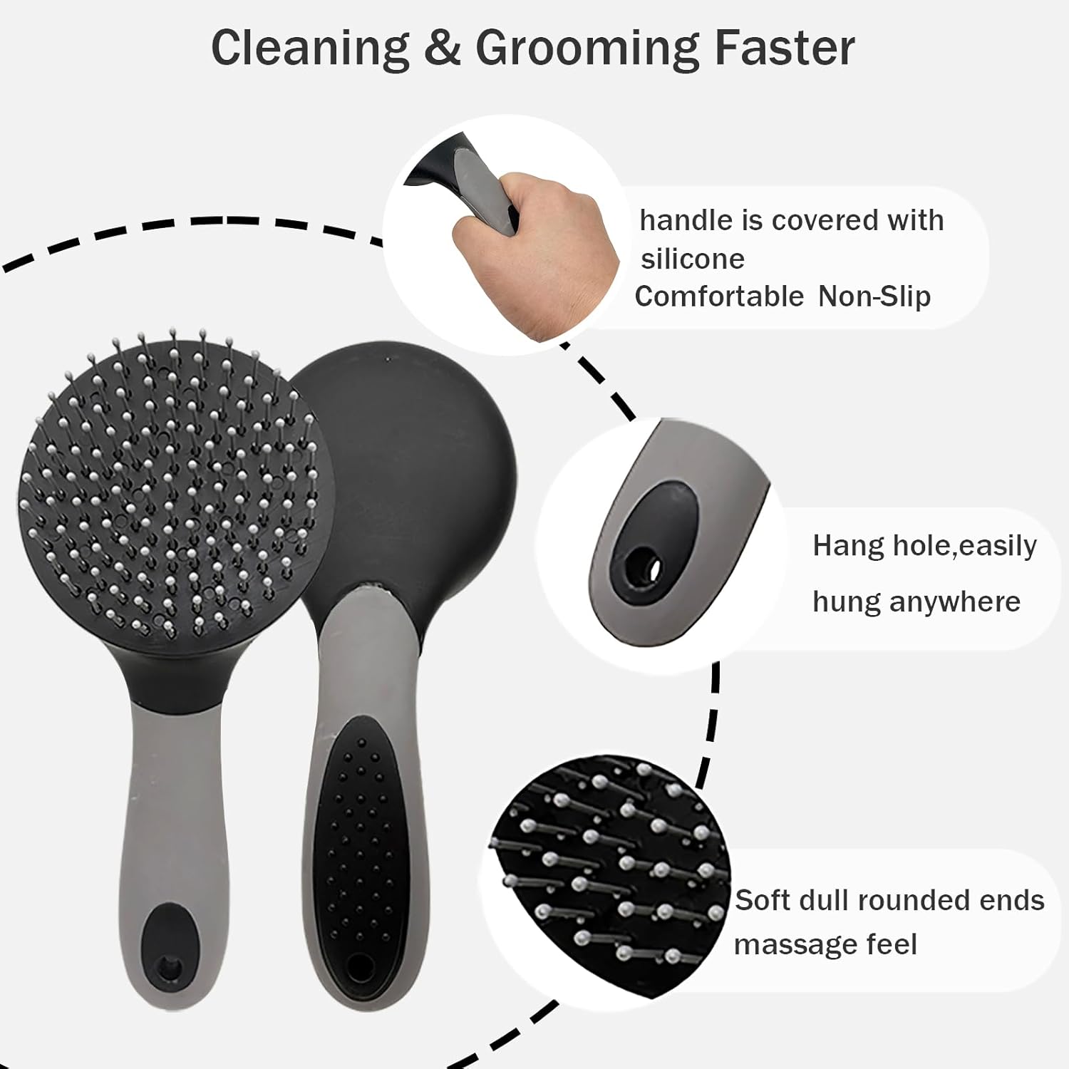 • [Gentle and Comfortable],All of the teeth have soft dull rounded ends,evenly distributed, providing a smooth combing, gently and effectively remove loose hair, tangles, knots, dander and dirt without hurting.meanwhile it also has the massage soothing effect,makes it a enjoyable experience.