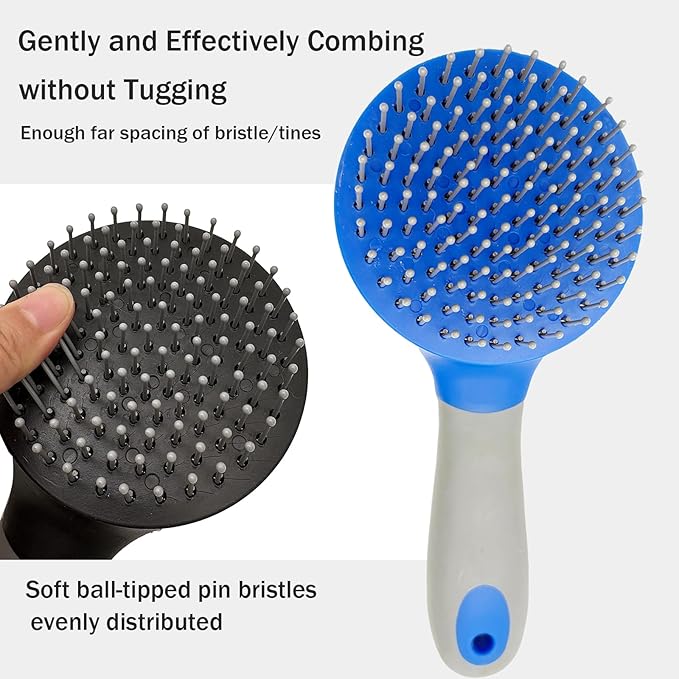- [Gentle and Comfortable],All of the teeth have soft dull rounded ends,evenly distributed, providing a smooth combing, gently and effectively remove loose hair, tangles, knots, dander and dirt without hurting.meanwhile it also has the massage soothing effect,makes it a enjoyable experience.