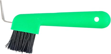 Jeffers Equine Hoof Pick & Brush, Green – Horse Hoof Cleaning Tool for Grooming, Farrier, Equestrian Care – Durable Hoof Pick with Stiff Bristles – 4 inch Easy Grip Handle