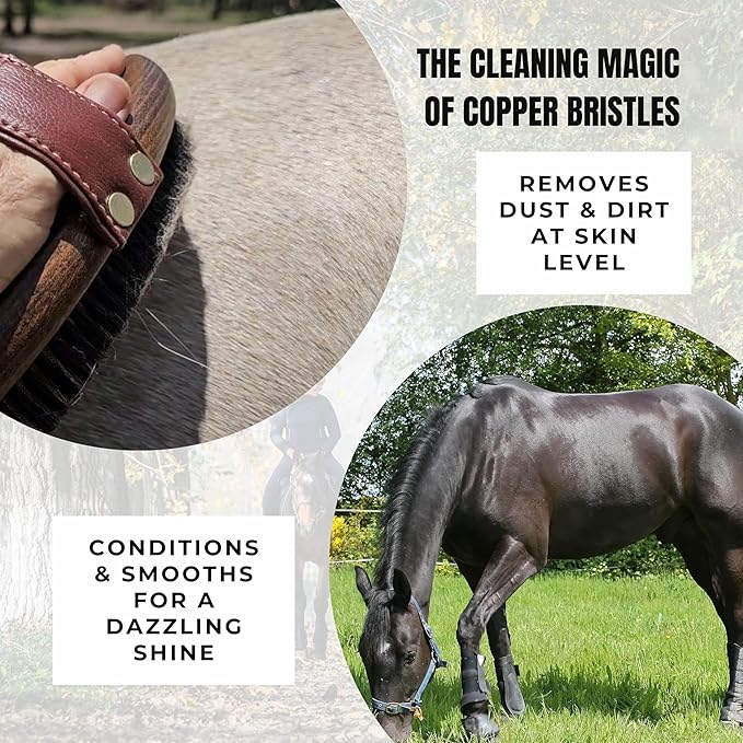 - Dual Bristle Action for Total Clean: Stiff polypropylene bristles clear surface debris while copper bristles lift hidden grime near the skin—ensuring a thoroughly clean, vibrant coat