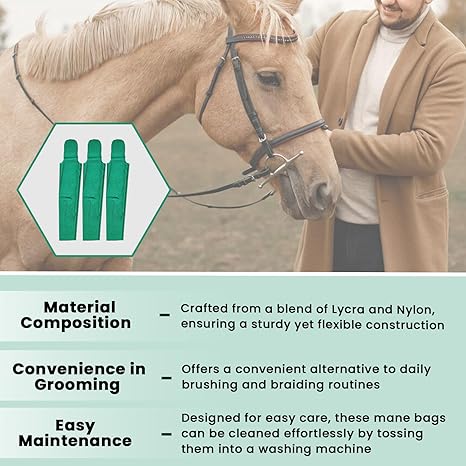 - TIME SAVING SOLUTION: Our mane bags for horses serve as a time-saving solution for horse grooming. By using these bags, you can reduce the need for daily brushing and braiding, making it convenient for horse care routines. Washing these mane bags is hassle-free; they can be easily cleaned by tossing them into any washing machine and then air drying.