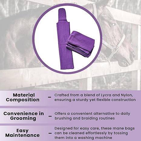 - TIME SAVING SOLUTION: Our mane bags for horses serve as a time-saving solution for horse grooming. By using these bags, you can reduce the need for daily brushing and braiding, making it convenient for horse care routines. Washing these mane bags is hassle-free; they can be easily cleaned by tossing them into any washing machine and then air drying.