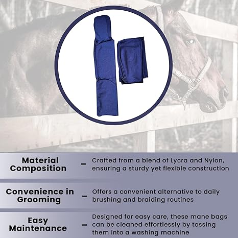 • TIME SAVING SOLUTION: Our mane bags for horses serve as a time-saving solution for horse grooming. By using these bags, you can reduce the need for daily brushing and braiding, making it convenient for horse care routines. Washing these mane bags is hassle-free; they can be easily cleaned by tossing them into any washing machine and then air drying.