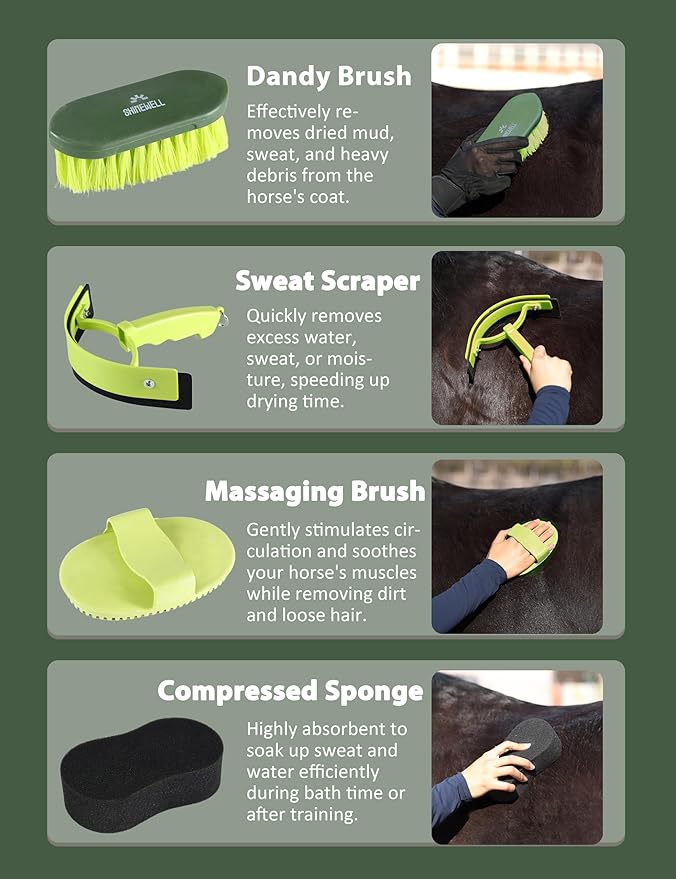 - Versatile for All Horse Coats: Whether your horse has a thick winter coat or a sleek summer shine, this kit provides the right tools for effective grooming year-round.