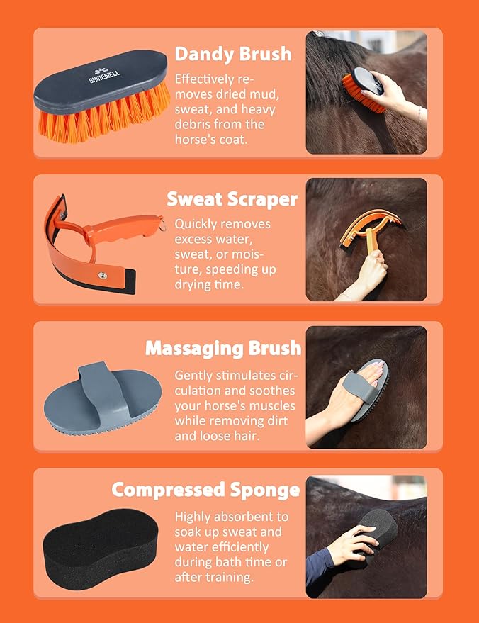 • Versatile for All Horse Coats: Whether your horse has a thick winter coat or a sleek summer shine, this kit provides the right tools for effective grooming year-round.