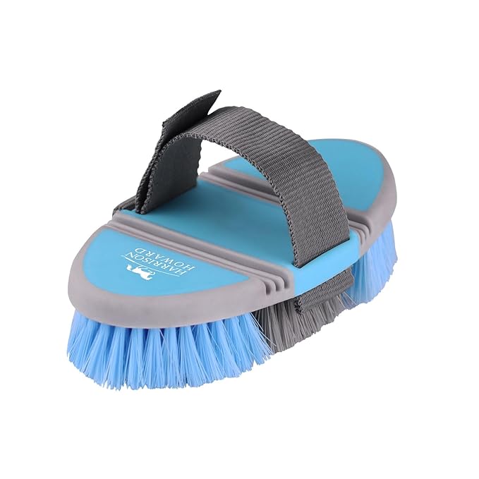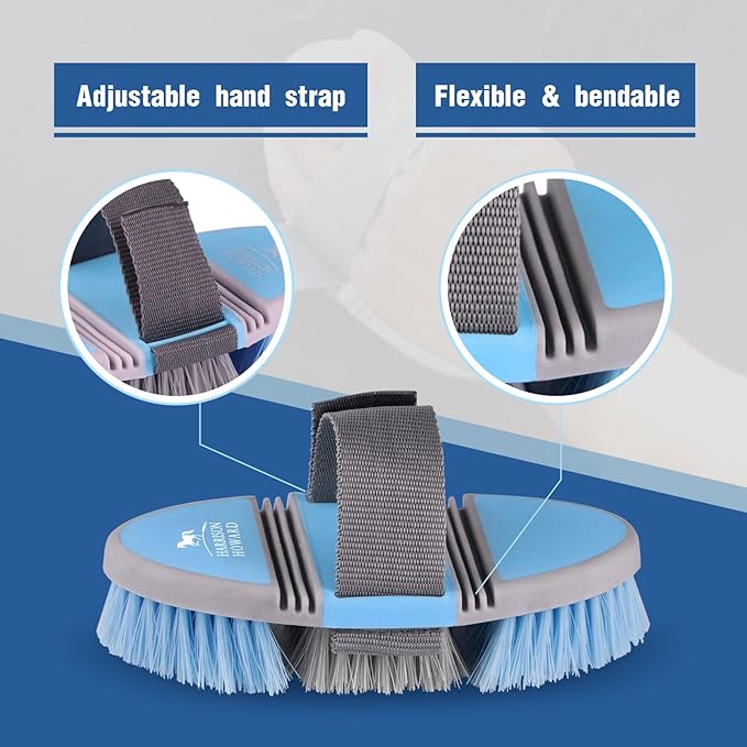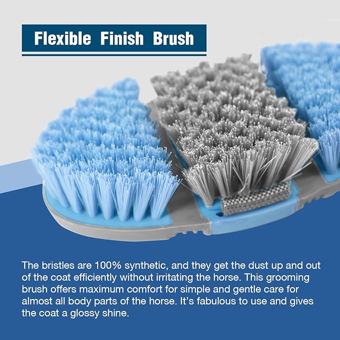 Harrison Howard Flexible Finish Horse Grooming Brush – Bendable, Comfortable Hold, Light Blue