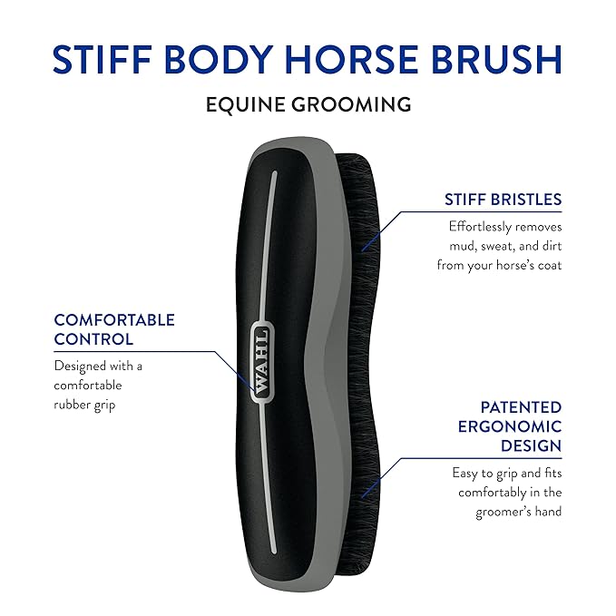 - Wahl’s Combo Body Horse Brush combines a stiff and soft brush to effortlessly remove mud, sweat, and dirt from your horse’s coat
