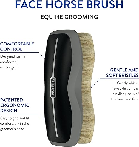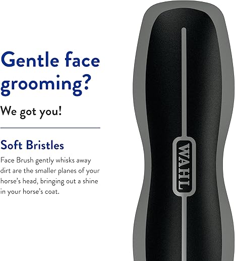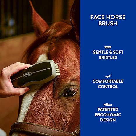 - Wahl’s Horse Face Brush gently whisks away dirt on the smaller planes of the head and face, bringing out a shine in your horse’s coat