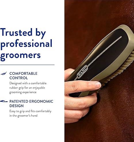 - With its patented ergonomic design, this horse brush is easy to grip and fits comfortably in the groomer’s hand